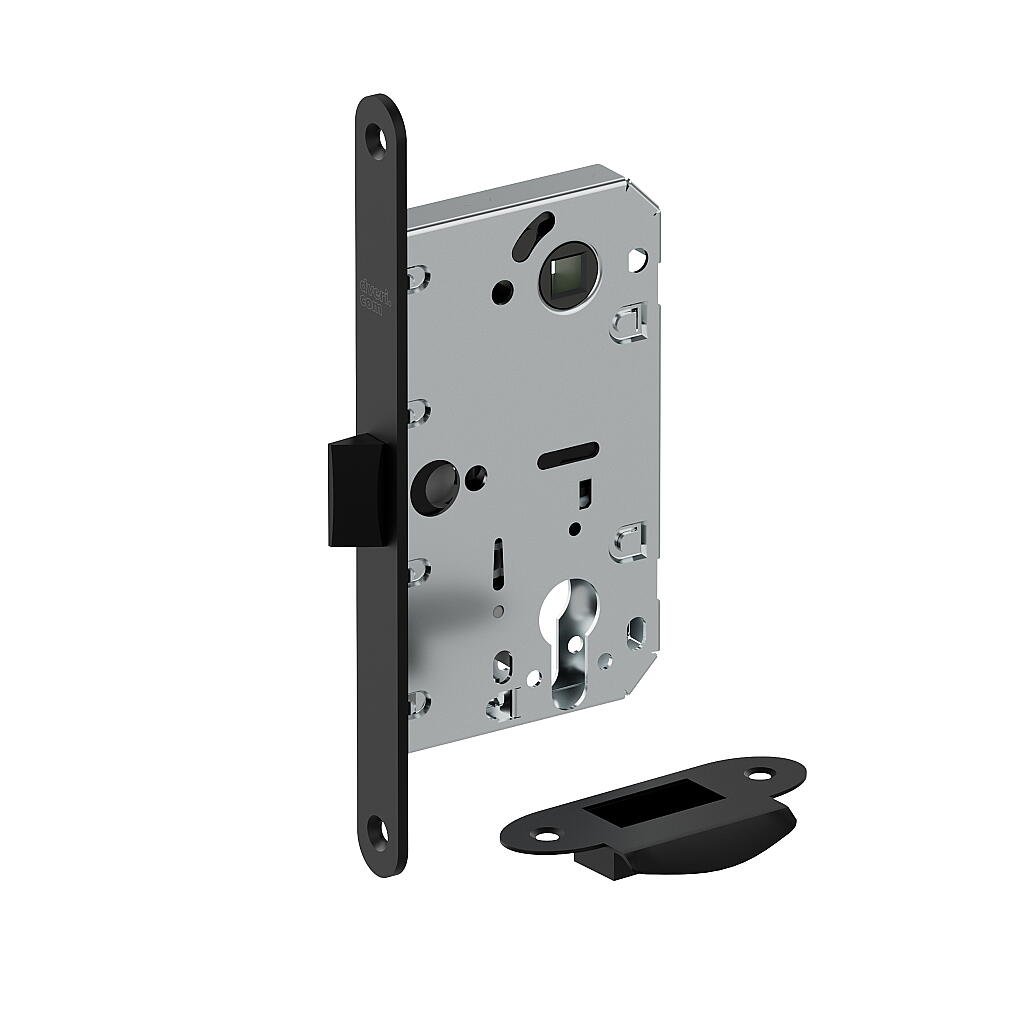 Описание: Цилиндровый врезной универсальный замок из стали с язычком из ударопрочного пластика предназначен для установки на межкомнатные двери с запиранием на ключ (ключ/фиксатор).