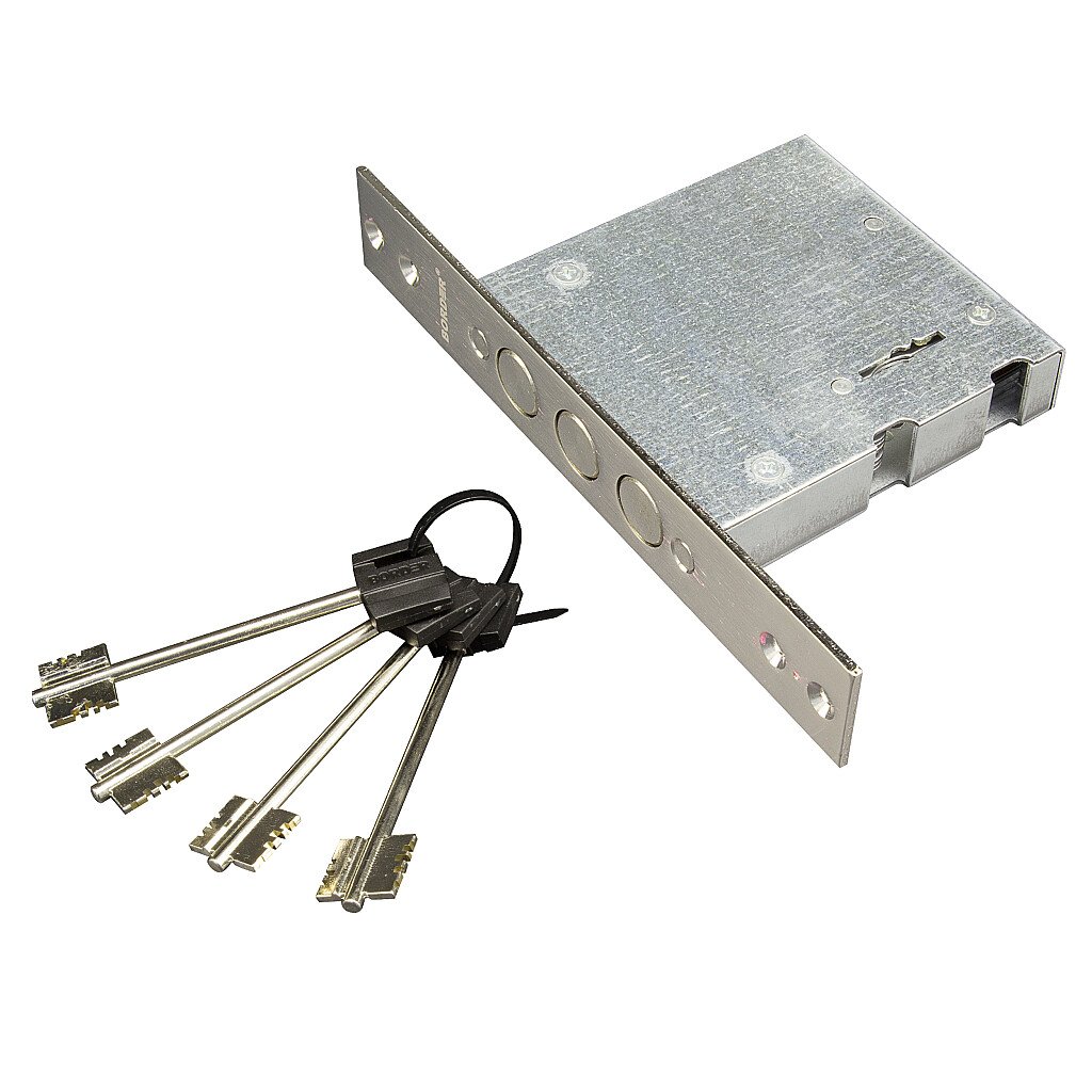 Описание: Замок врезной 6-сувальдный без защелки. Замок универсальный, его можно устанавливать как в правые, так и в левые двери. Замок имеет защиту от высверливания, изготовлен из высокопрочных материалов, имеет защитное покрытие.