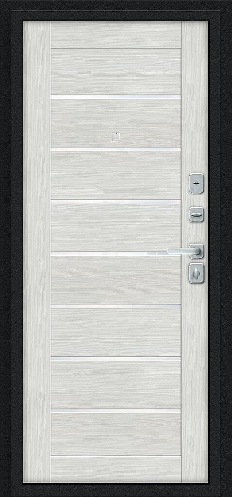 Входная дверь Техно/BChrome (цвет Букле черное/Bianco Melinga)